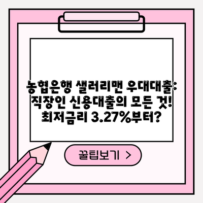 ✅ 농협은행 샐러리맨 우대대출, 최저금리 3.27%부터? 자격조건, 필요서류, 한도, 신청방법까지 한눈에 확인하세요!