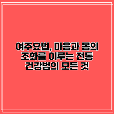여주요법, 마음과 몸의 조화를 이루는 전통 건강법의 모든 것