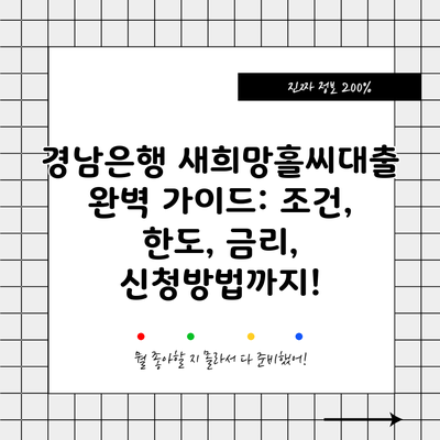 ✅ 경남은행 새희망홀씨 대출, 자격조건부터 신청방법까지! 궁금한 모든 것을 한 번에 확인하세요.