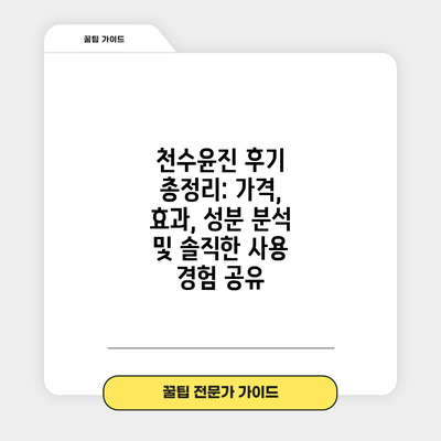 천수윤진 후기 총정리: 가격, 효과, 성분 분석 및 솔직한 사용 경험 공유