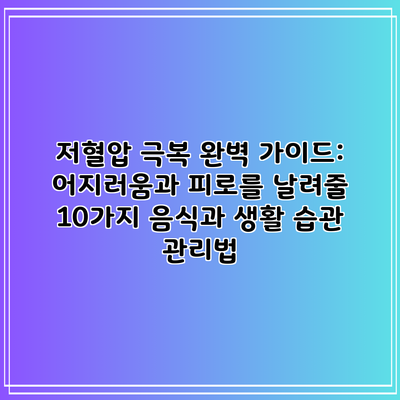 저혈압 극복 완벽 가이드: 어지러움과 피로를 날려줄 10가지 음식과 생활 습관 관리법
