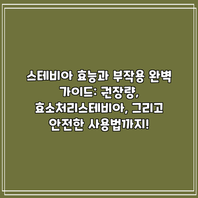 스테비아 효능과 부작용 완벽 가이드: 권장량, 효소처리스테비아, 그리고 안전한 사용법까지!