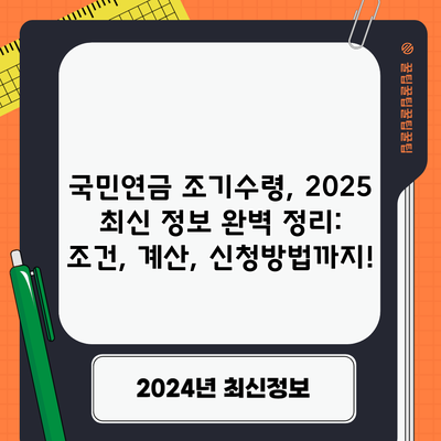 국민연금 조기수령, 2025 최신 정보 완벽 정리: 조건, 계산, 신청방법까지!