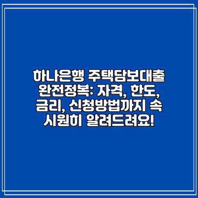 하나은행 주택담보대출 완전정복: 자격, 한도, 금리, 신청방법까지 속 시원히 알려드려요!