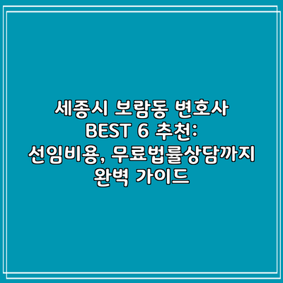 세종시 보람동 변호사 BEST 6 추천: 선임비용, 무료법률상담까지 완벽 가이드
