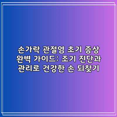 손가락 관절염 초기 증상 완벽 가이드: 조기 진단과 관리로 건강한 손 되찾기