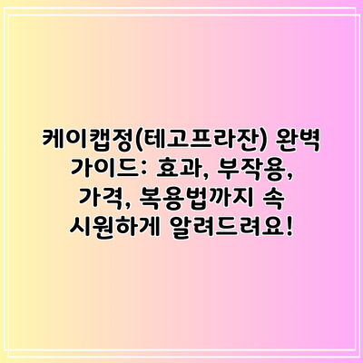 케이캡정(테고프라잔) 완벽 가이드: 효과, 부작용, 가격, 복용법까지 속 시원하게 알려드려요! 속이 쓰리고 불편해서 잠 못 이루는 밤, 혹시 경험하고 계신가요? 많은 분들이 겪는 역류성 식도염, 그 고통을 케이캡정으로 해결할 수 있다면 얼마나 좋을까요? 오늘은 케이캡정(주성분: 테고프라잔)에 대해 효과, 부작용, 복용법, 가격까지 꼼꼼하게 알아보고, 역류성 식도염으로 고생하는 여러분께 도움을 드리고자 합니다. ✅ 케이캡정(테고프라잔)의 효과, 부작용, 복용법 … Read more