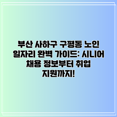 부산 사하구 구평동 노인 일자리 완벽 가이드: 시니어 채용 정보부터 취업 지원까지!