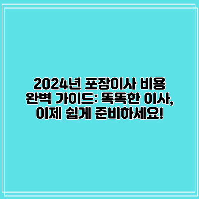 2024년 포장이사 비용 완벽 가이드: 똑똑한 이사, 이제 쉽게 준비하세요!